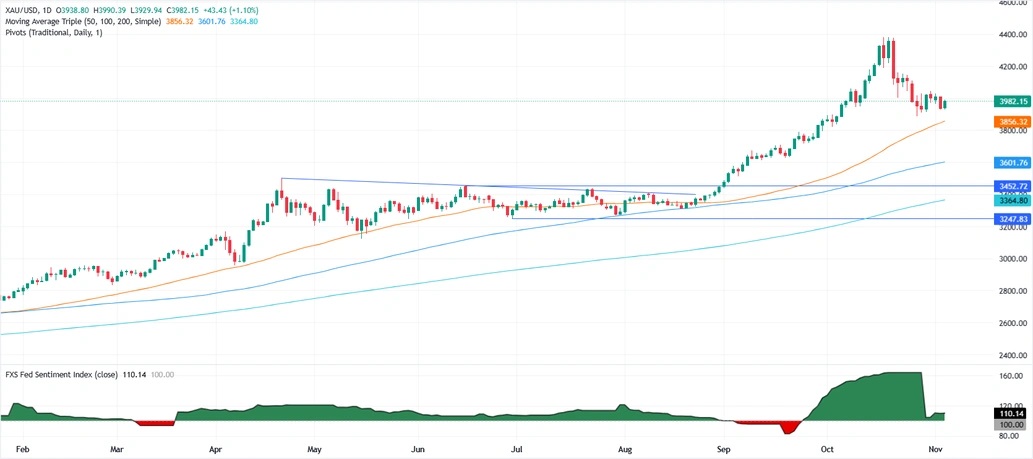 FXStreet分析师Christian Borjon Valencia指出,金价周三攀升逾1%,避险需求和美联储鸽派言论使金价维持在3980美元/盎司附近。交易员们密切关注美国最高法院关于关税的听证会。