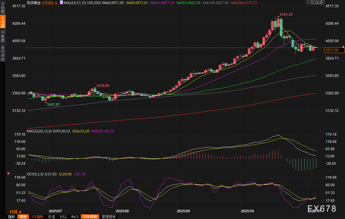 周四(11月6日)亚市早盘,现货黄金一度跌破3970美元,最低触及3966美元,目前交投于3972美元/盎司附近,跌幅约0.15%,不过仍守住隔夜大部分涨幅。周三金价上涨1.2%,最高摸到3990.24美元,收盘3978.95美元,距离4000美元整数关仅一步之遥!因逢低买盘和避险买盘支撑金价,不过ADP就业数据强于市场预期,ISM非制造业PMI数据也表现强劲,市场对美联储12月降息预期降温,美元指数刷新近五个月高点,美债收益率大涨至近一个月高点,令多头有所顾忌。