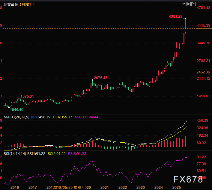 他在近期一份分析报告中写道“过去12个月,黄金以美元计价累计上涨45%,这一涨幅让日经225指数、纳斯达克综合指数及恒生科技指数都相形见绌,同时也引发市场疑问:在呈现泡沫特征之前,金价究竟能攀升至何种高度,”。