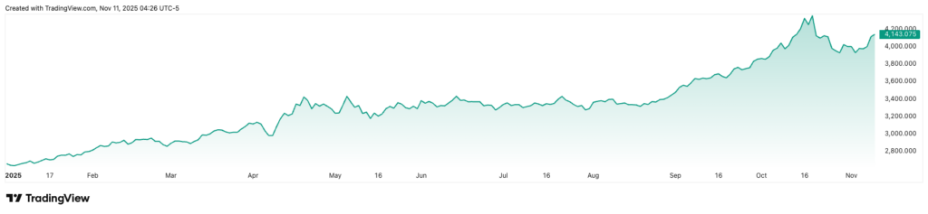 同样值得关注的是,黄金在短暂跌破3,000美元/盎司关口后重新获得上行动能。在市场预期美联储将在12月降息以及美国政府停摆问题取得进展的背景下,金价已攀升至近三周来的最高水平。