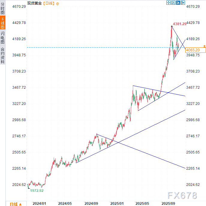 目前市场重点关注黄金4000美元心理关口支撑,这道防线依然坚固。若失守4000美元关口,或将转向进一步看空;倘若跌破10月末形成的3885美元附近波段低点,则需开始防范更深层次回调的风险。