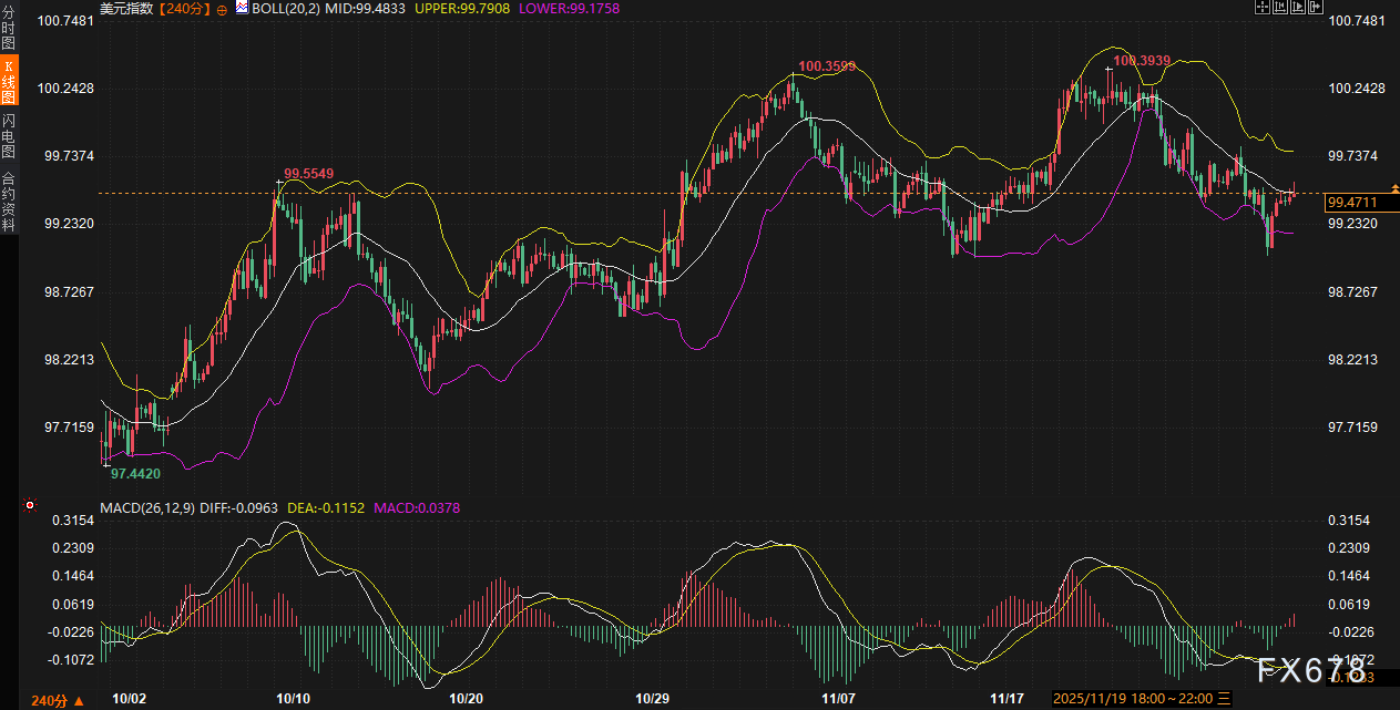 下方重要支撑:99.30 - 99.15 。布林带下轨提供初步支撑,若跌破,可能测试周一创下的逾两周低点延伸区域。