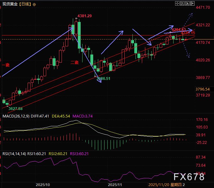 周一(12月8日)亚欧时段现货黄金(XAU/USD)继续走出冲高回落走势,上周五金价冲高之后回落50美金,目前交投于4205美元附近,这两个交易日的冲高回落代表金价上涨乏力,市场可能已经开始押注美联储本次为鹰派降息。