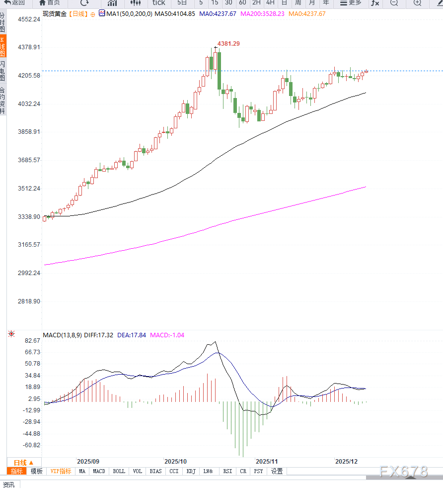 短线阻力位预计位于4260—4280美元区域,一旦突破,或为金价打开进一步上探空间;下方支撑区看向4200美元整数位以及4160美元一线,一旦跌破,可能引发技术性回调。