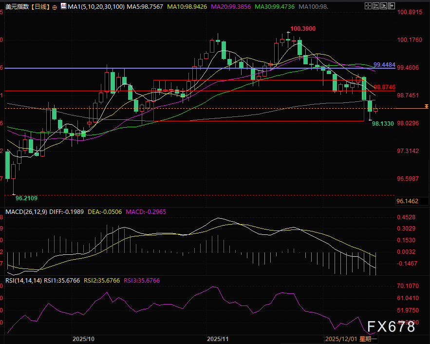 追踪美元兑六大主要货币的美元指数(DXY)周四触及八周低位后,目前交投于98.43附近,且有望实现连续第三周下跌,美元的弱势格局进一步强化了黄金的交易吸引力,成为推动金价上行的重要辅助因素。