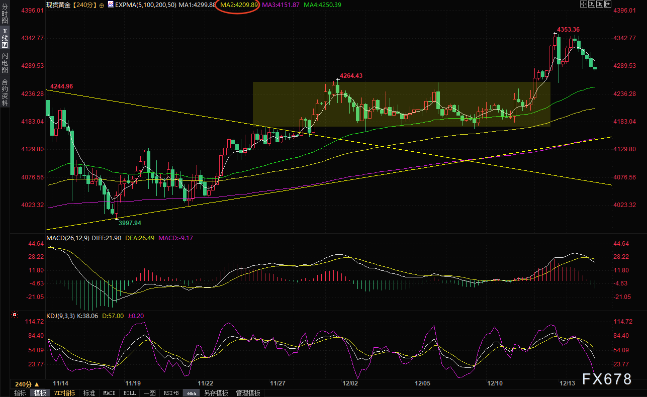 周二(12月16日)亚洲时段,黄金价格出现回落势头,一度跌破4300美元整数关口,目前交投于4285美元/盎司附近,跌幅约0.5%。这一走势主要受到短期期货交易者的获利了结和弱多头平仓的影响。此外,乌克兰和平谈判取得积极进展的乐观情绪,也在一定程度上削弱了黄金作为传统避险资产的吸引力,导致其需求暂时减弱。
