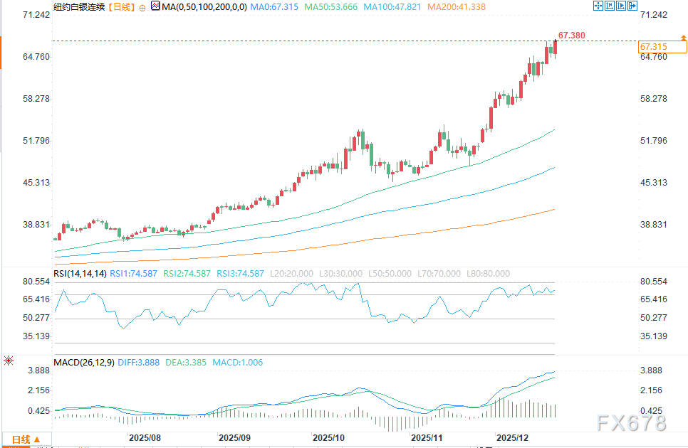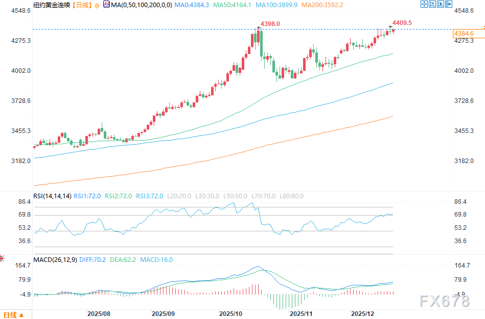 周五(12月19日)美盘早盘时段,金价小幅走高,银价则录得可观涨幅,距离本周创下的历史高点仅一步之遥。临近周末,且距离圣诞节不足一周,市场整体交投情绪趋于平淡。2月黄金期货价格盘中上涨13.6美元,报4378.1美元;3月白银期货价格上涨1.506美元,报66.725美元。