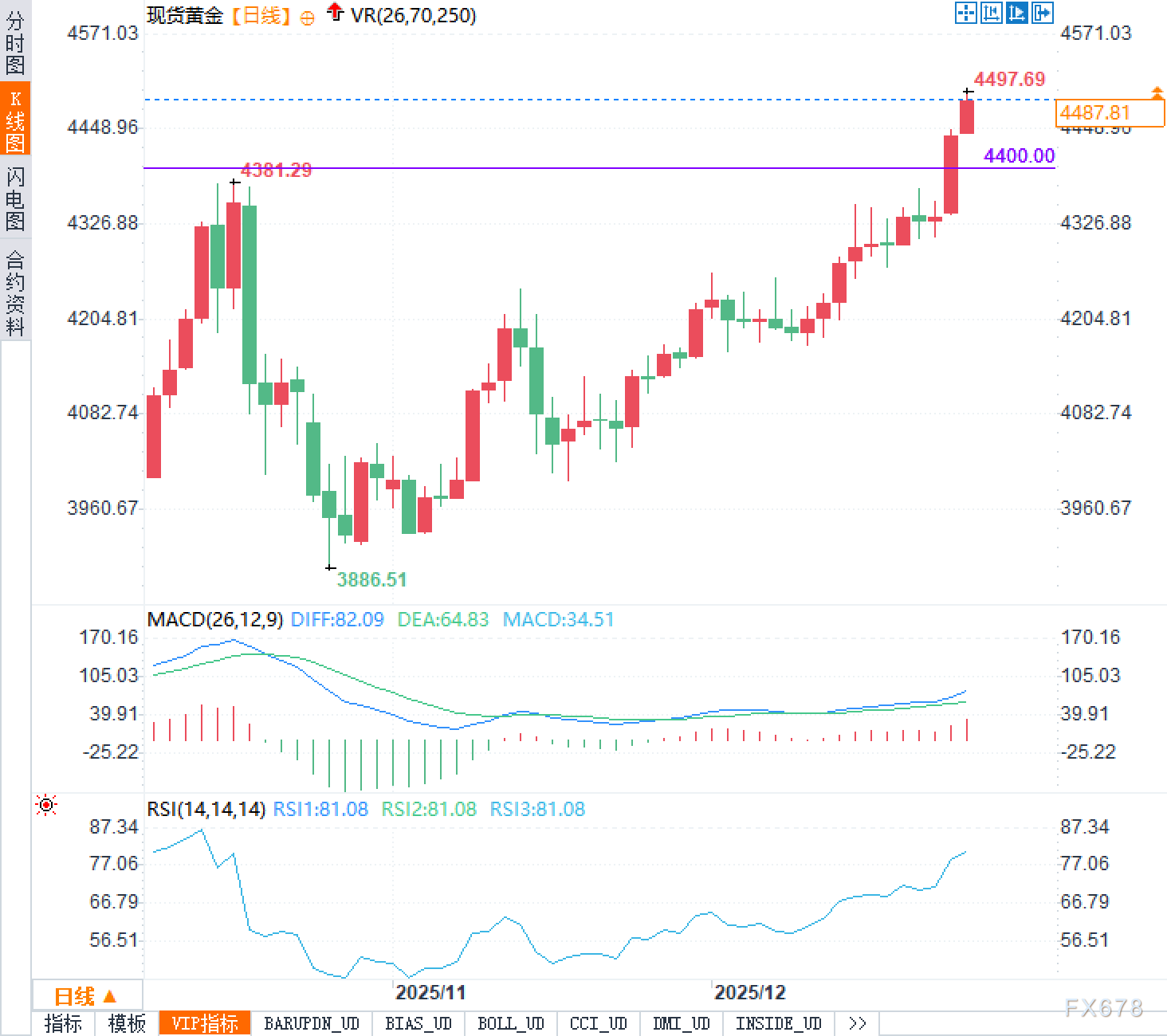 从技术形态来看,金价在上冲4500区域后出现高位整理,并未出现急涨急跌的典型“见顶信号”。当前关键支撑位落在4400附近,分析认为只要价格能在此上方维持韧性,整体上行结构依然完整。