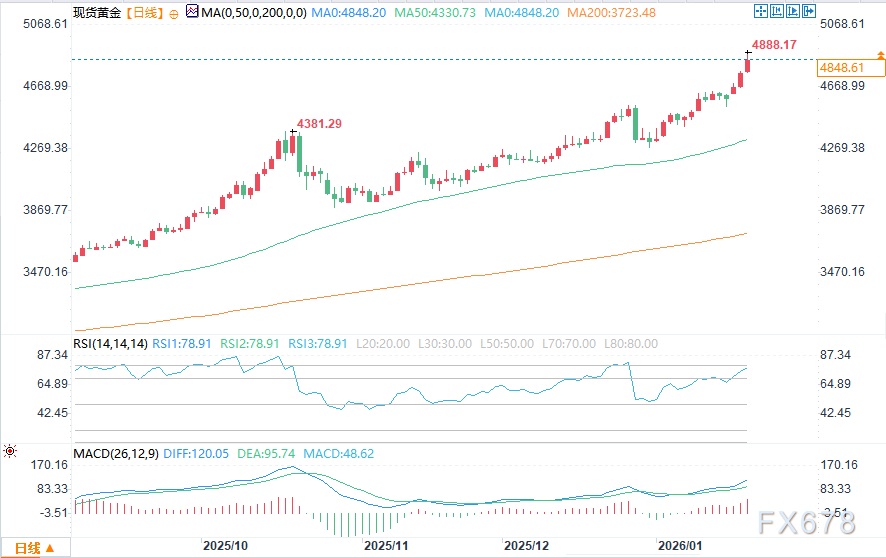 从技术面来看,当前黄金价格突破4,500美元关键阻力位后,形成了“突破-回踩-再上涨”的健康走势,均线系统呈多头排列,量能持续放大,吸引了大量趋势跟踪型资金入场,进一步强化了上涨势头。此外,黄金市场的杠杆资金持仓也显示,对冲基金等专业投资者的黄金净多头头寸仍在持续增加,尚未出现过度拥挤的迹象,为金价后续上涨预留了空间。